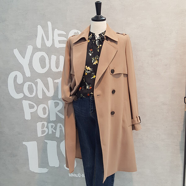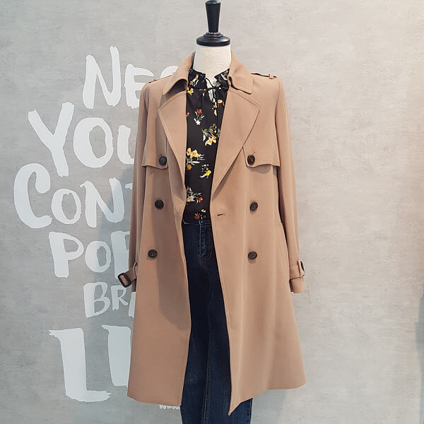 베이직한 디테일이 돋보이는 스타일리시하면서 심플한 디자인의 트렌치코트입니다