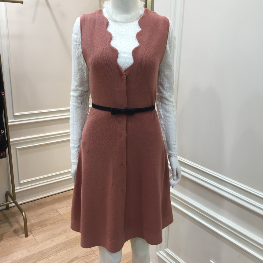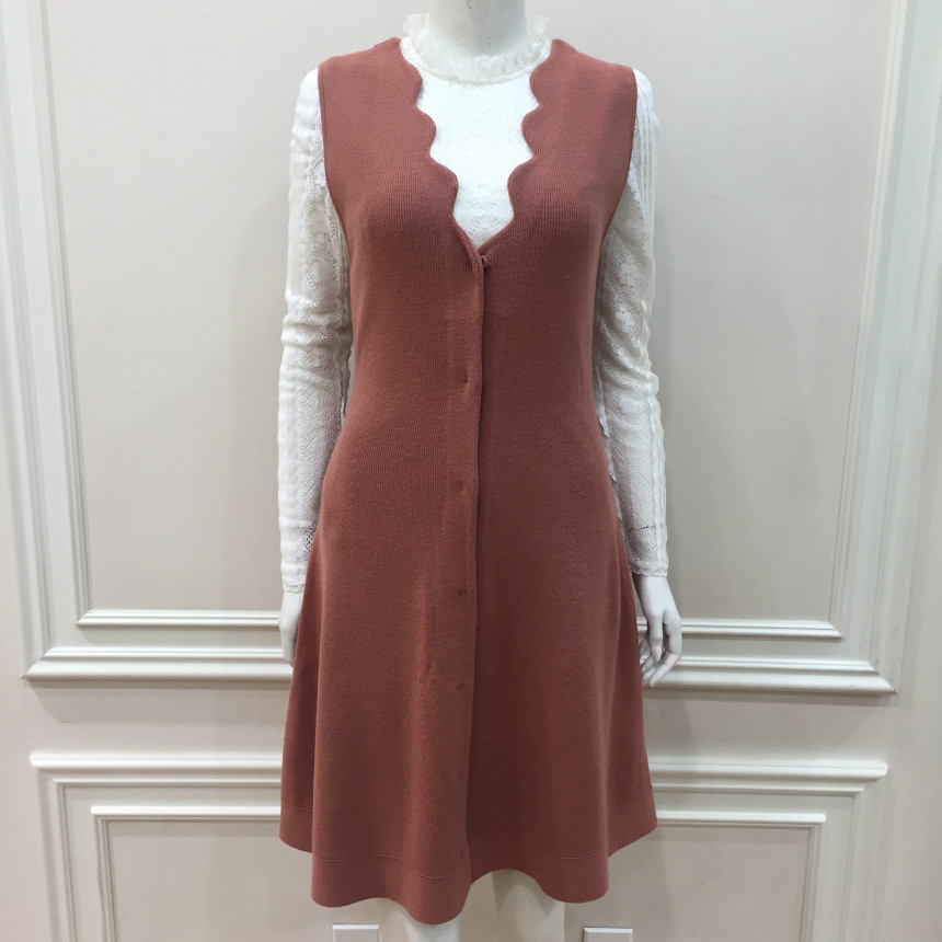- 네크라인의 스캘럽 디테일이 귀여운 핏앤플레어 실루엣의 롱 베스트입니다.