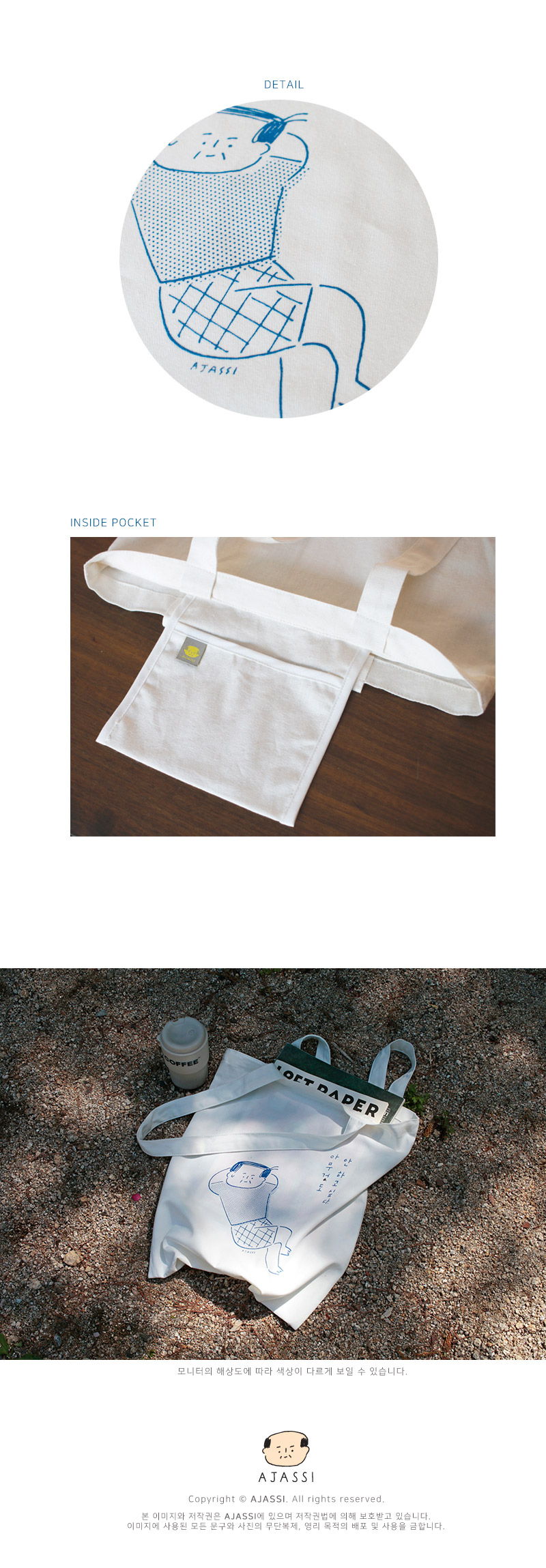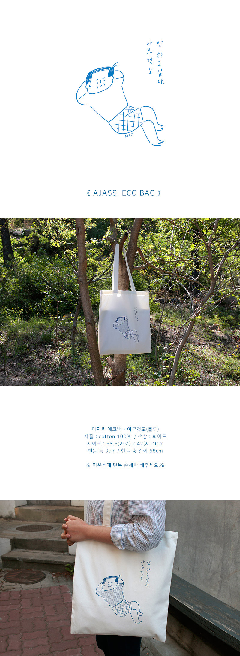 화이트컬러로 리뉴얼된 아자씨 에코백입니다.