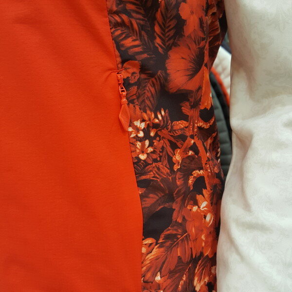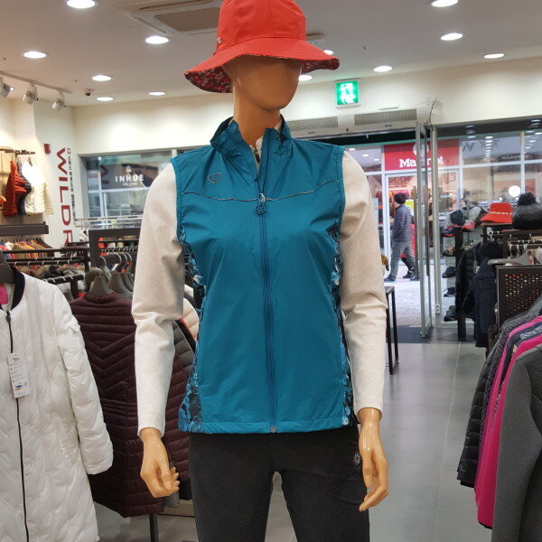 ㅡ투수,방수력이 우수한 통기성 코팅 소재를 접목하였으며 사이바에 플라워 무늬프린트로 디자인 포인트를 가미한 방풍 베스트ㅡ안감에 메쉬소재를 적용하여 착용시 쾌적함 강화한제품