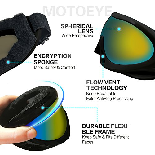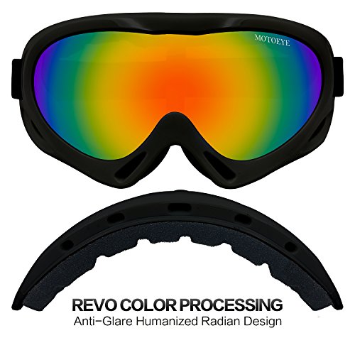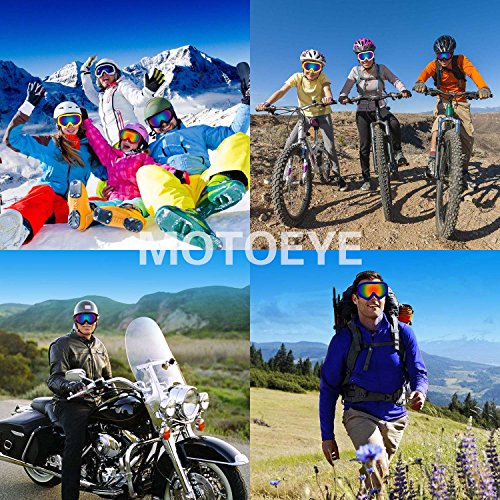 ABOUT MOTOEYE SKI GOGGLESThis MOTOEYE ski goggles are designed for starting ski fans or other outdoor sports such as bicycling,motorcycling,hiking,fishing,climbing etc.Inexpensive but high cost-effective.