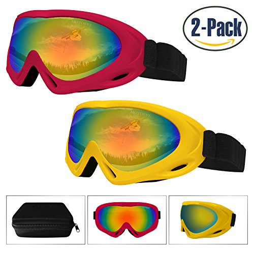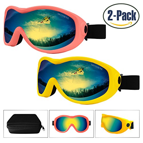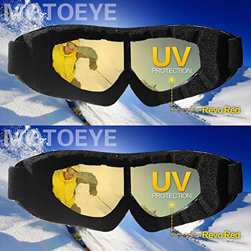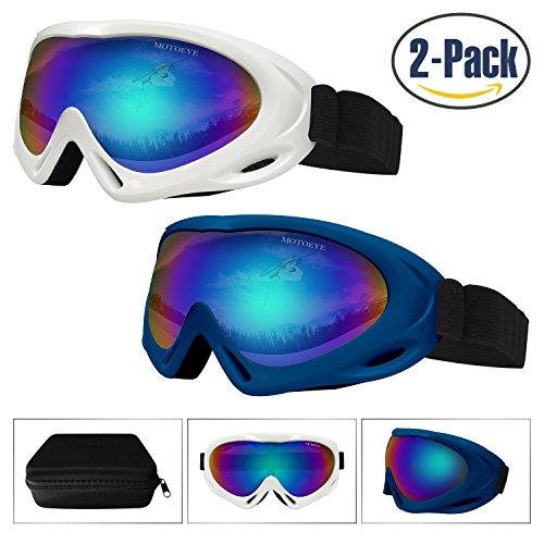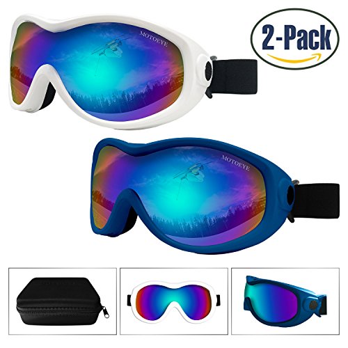 【Multi-purpose Use & PACKAGE】Not only for strating skiing,but also for bicycling,motorcycling,hiking,fishing or many other outdoor sports use.Package including:2 Motoeye Ski Goggles in different colors as pics show,1 piece of Nano-Microfiber Anti-fog Wipe Cloth,1 Protective Case & User's Guide Paper