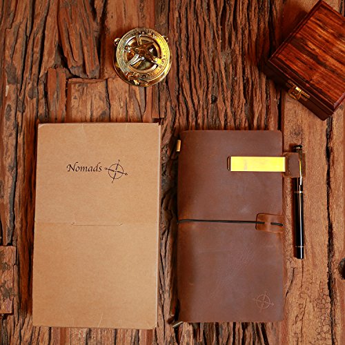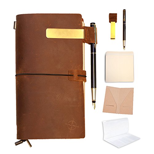 Refillable Leather Journal | Refillable Travelers Notebook BUNDLE | FREE FOUNTAIN PEN| Pen holder|Gift Box|Clip|Zipper Lock Bag | Card Pocket and 3 Paper Notes For Writing, Drawing, Sketching