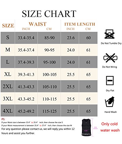 -. Feature : Function & Effects: Flatten abdomen, more sweat out when exercise, crazy sweat in the hot, protecting spine, muscle training / PROMOTES BODY HEAT: Neoprene makes you sweat like there is no tomorrow. Design to make you Sweat like crazy and enhance your workout to achieve your weight loss goals. / Neoprene training vest could be worn under or over your regular shirts, ideal for gym ready, fat burner, waist trainer and muscle building / Zip closure, Keep Your Muscles Warm, Improve Your Posture, Stabilize Spine. Provides Therapeutic Support that Helps Prevent a Herniated Disc, Lumber Muscle Strain, Back Pain