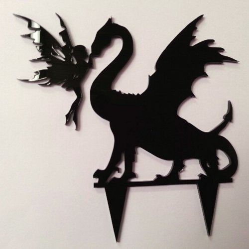 - Fairy and Dragon Cake Topper, in Black Acrylic