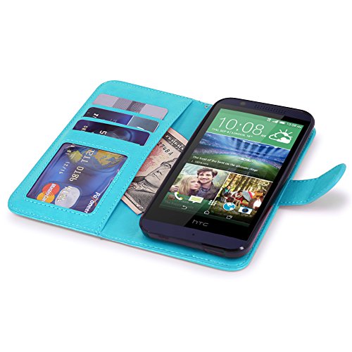 HTC Desire 520 Case, LK [Kickstand Feature] Luxury Wallet PU Leather Flip Cover Built-in Card Slots & Stand For HTC Desire 520 (Sky Blue)