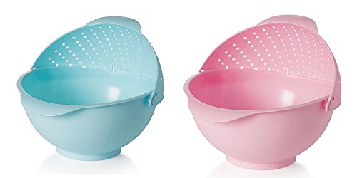 Multipurpose Plastic Rice Washer Strainers Rice Wash Colander Container with Mesh Sieve Bowl Kitchen Cleaning Tool for Fruits, Veggies, Pasta and more Pack of 2 (Color May Vary)