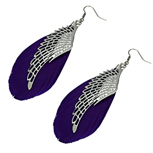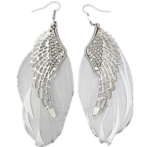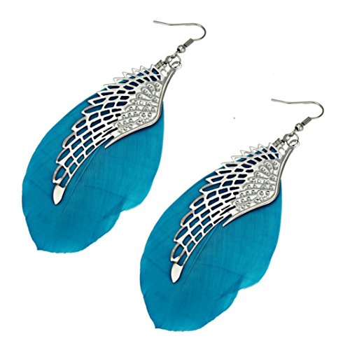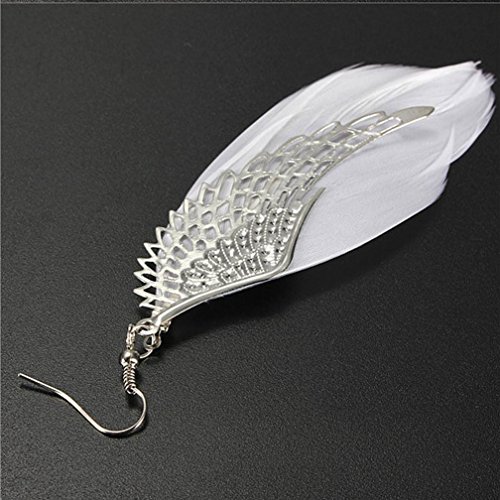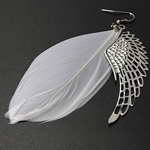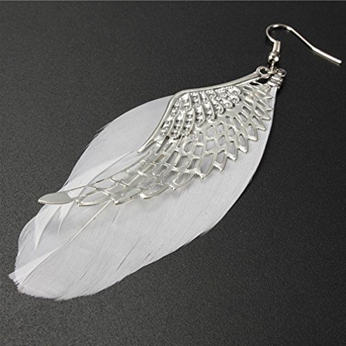 -. Title : Susenstone Angel Metal Wing Bohemian Handmade Vintage Feather Long Drop Earrings