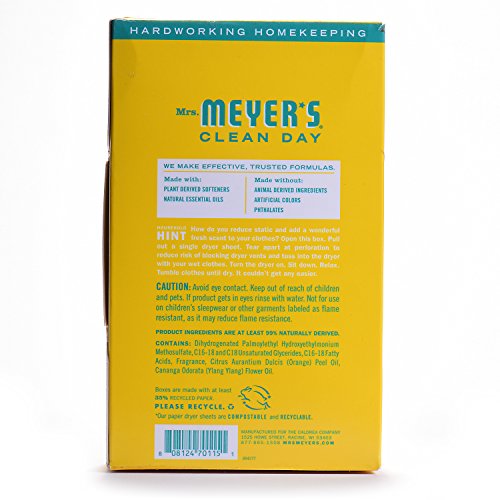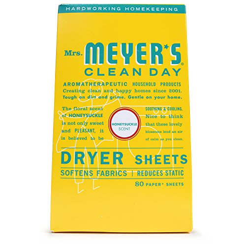 -. Binding : Health and Beauty -. Brand : Mrs. Meyer's Clean Day -. EAN : 0808124701151 -. Feature : Softening, Anti-Static / Ingredients are at least 99% naturally derived, including water content / Made in the USA / Free of animal-derived ingredients and not tested on animals -. IsAdultProduct : 0 -. Label : SC JOHNSON -. Manufacturer : SC JOHNSON -. MPN : 808124701158 -. NumberOfItems : 1 -. PackageQuantity : 1 -. PartNumber : 808124701158 -. ProductGroup : Health and Beauty -. ProductTypeName : HEALTH_PERSONAL_CARE -. PublicationDate : 2017-03-27 -. Publisher : SC JOHNSON -. ReleaseDate : 2017-03-27 -. Studio : SC JOHNSON -. Title : Mrs. Meyer's Clean Day Dryer Sheets, Honey Suckle, 80 Count -. UPC : 808124701151
