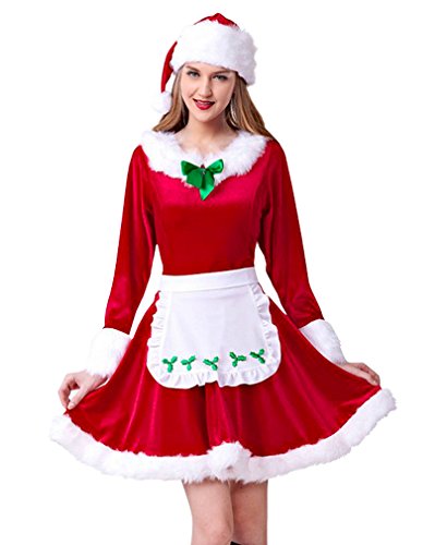 -. Feature : Our Size is Different from US Size, DO NOT USE AMAZON SIZE GUIDE, Please Refer to Our Size Chart Below in the Product Description. / 3 Pcs. The Christmas Costume Dress Include a Dress, a Hat and an Apron. / Long Sleeves, White Faux Fur Trimmed, Front Bowknot Accent, Back Zipper. / The Apron with Ruffled Edge and Trefoil Embroidery. / Garment Care: To Avoid Damaging the Costume, Hand Wash Separately, Do not Use Machine to Wash or Soak for too Long.,***Notice:To ensure all your rights are protected and Quality of Item, please purchase genuine authentic products ONLY from 'Zp Fashion' ***