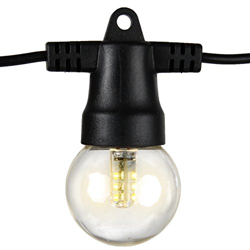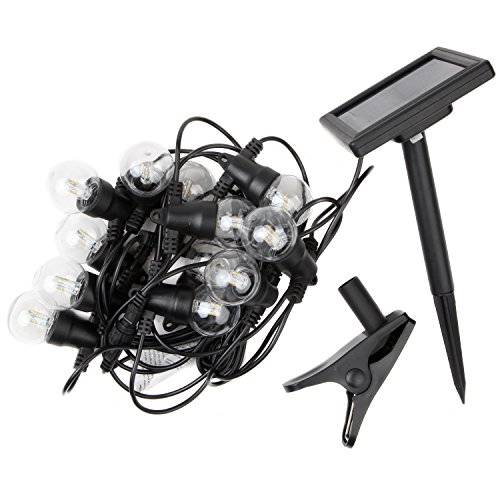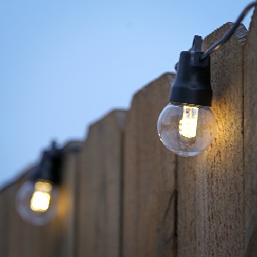 - LUMINOUS DÉCOR FOR ANY OCCASION: Illuminate your patio, deck, garden, balcony, porch, gazebo, or pergola in an elegant warm glow to set the mood for an evening of fun and laughter outdoors or for a romantic dinner al fresco. These Solar Powered heavy duty LED string lights will create the perfect atmosphere for a birthday party, family reunion, evening cocktail party, or wedding reception. Each strand is 27 feet long with 12 G40 bulbs spaced 20 inches apart (the lighted portion is 20 feet).