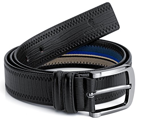 Double Sided Use - Removable buckle allow you to use both classic full leather side and designer canvas side, switch freely between business, leisure and sport occasions.