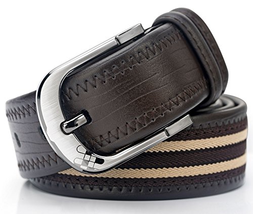 fashion leather&canvas men's belts for casual style with pin buckle and handmake double stitch for all sizes