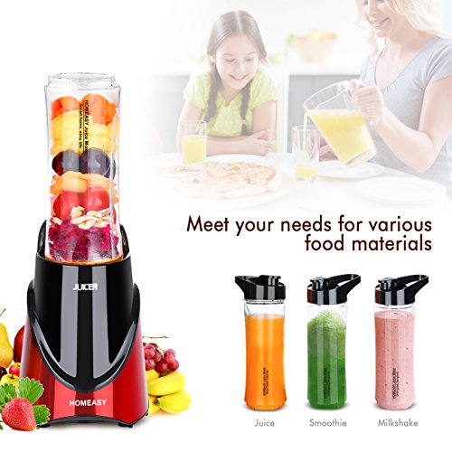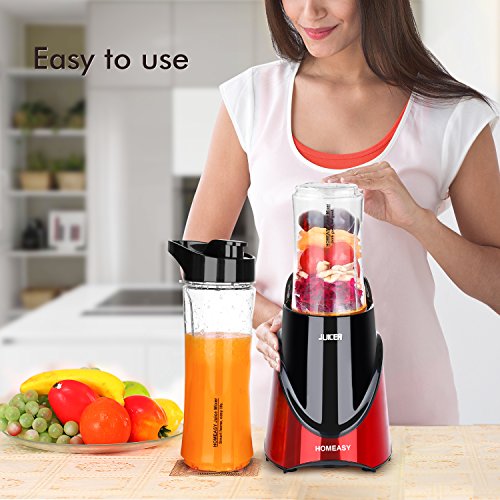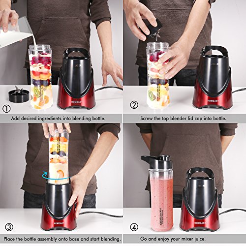✔ SAFETY AND QUALITY GUARANTEED: Why should choose HOMEASY ? Safety Personal Blender with FDA/CE/ROHS/PSE/EMC/GS Certification. POWERFUL 300w motor and 4 Heavy duty stainless steel blades Electric Smoothie Blender with Over Heat Protection. Two BPA-free Tritan copolyester blender travel bottles. FREE Using Instruction Book. 【100% RISK-FREE 2-YEAR WARRANTY.】