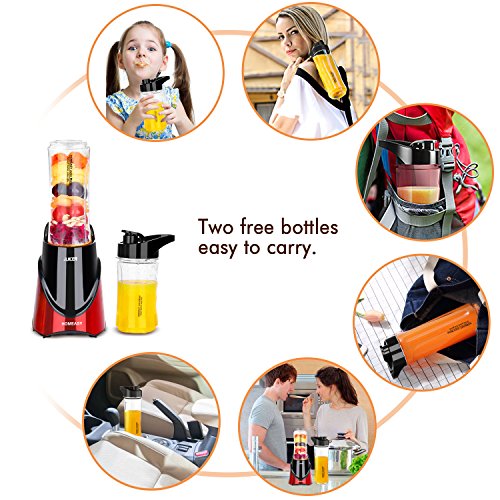 ✔ PORTABLE: Portable Blender ideal for the gym, work, school and days out - Just Blend and Go. Enjoy healthy life to make fruit and vegetable juices, milkshakes, smoothies, cocktails and more in a short time. Quickly blend your favorite "healthy drink" ingredients right into the dishwasher-safe plastic sports bottle with BUILT IN EASY GRIP, snap on a travel lid, and be on your way to the gym, class or office.