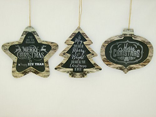 - Merry Christmas Chalkboard Set of 3 Ornaments 6 in - 7 inches each