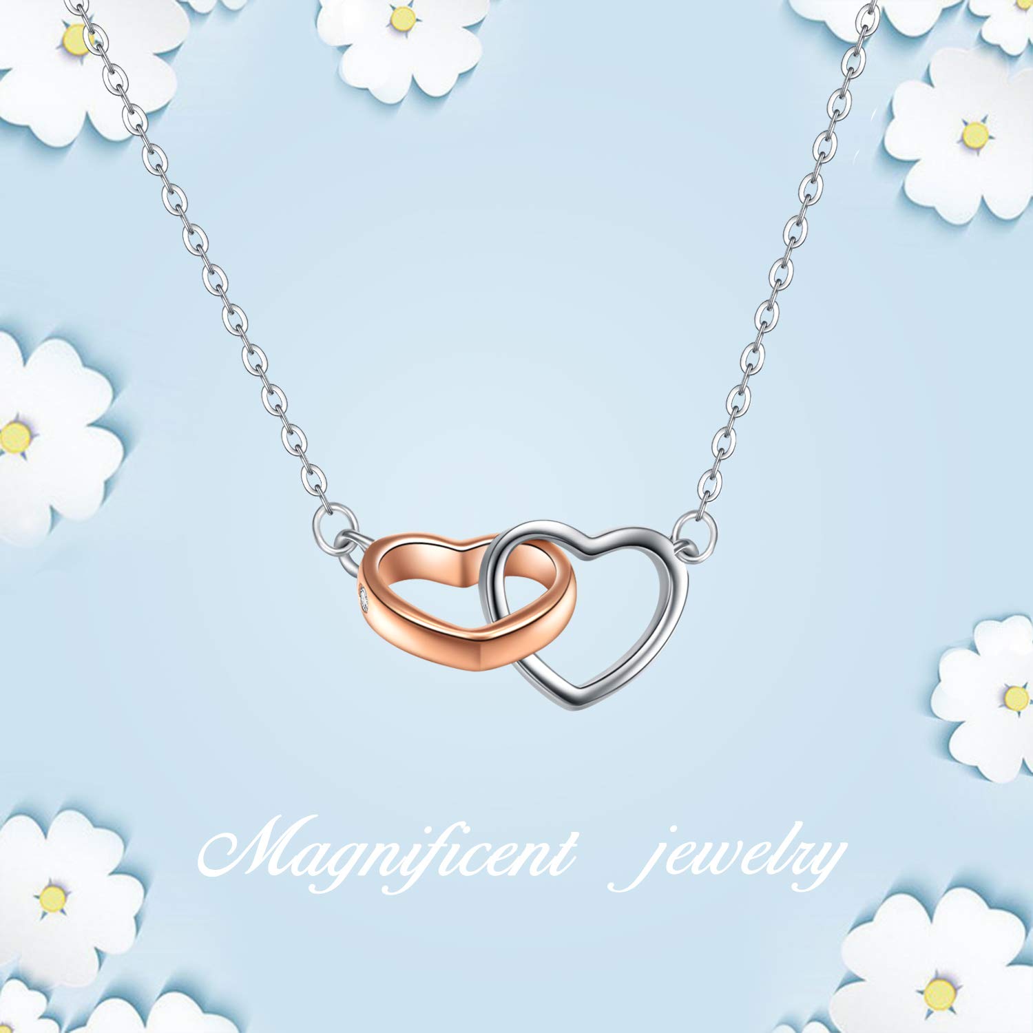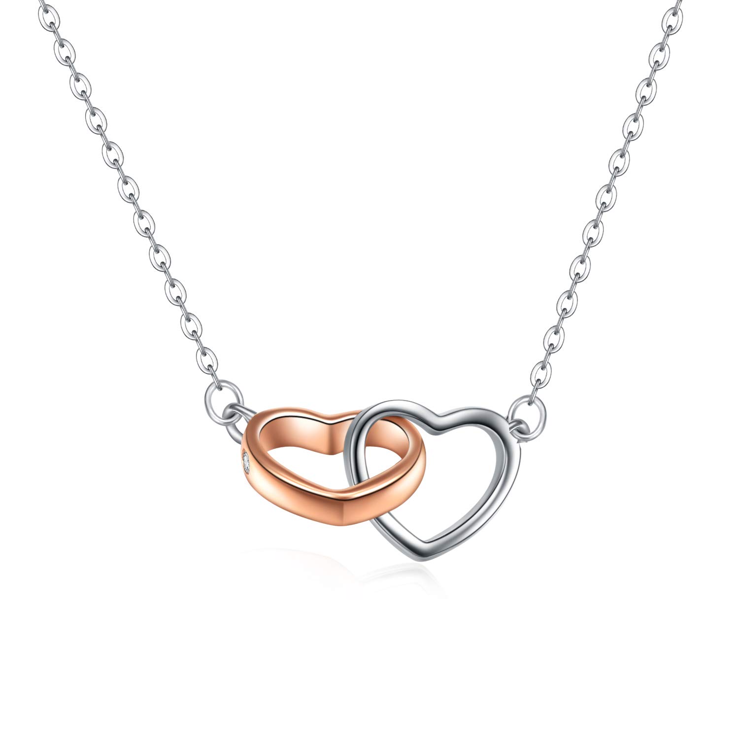 【優れるデザイン】:シルバー925を使用,ゴールドを電気めっきして、ふたつの心が付き合って、愛のモチーフのネックレスです。