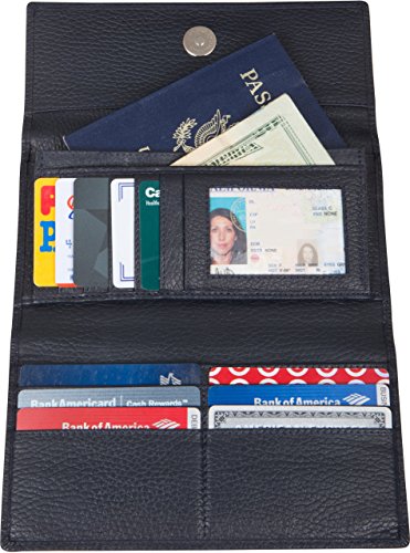 - Feature : All Pockets and folds Lined with Access Denied RFID Blocking Protection / License pocket with window, inside zip pocket, checkbook pocket / 11 Credit Card slots,2 inside pockets, Passport fits perfectly / Outside Zip pocket, magnectic snap closure / Prevents Electonic Pick Pocketing, protect your credit and debit cards