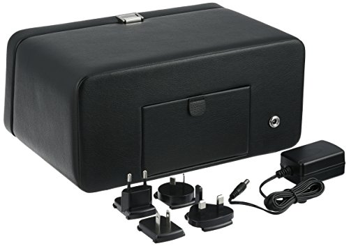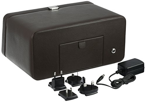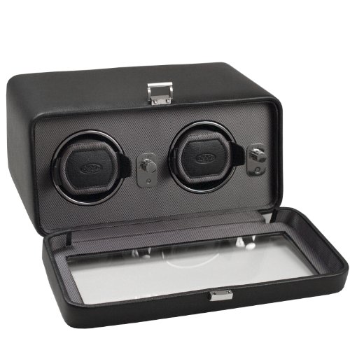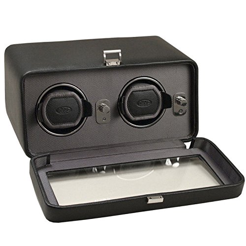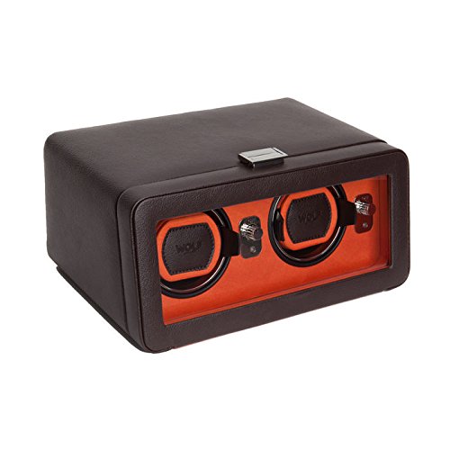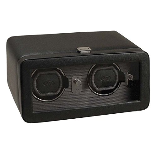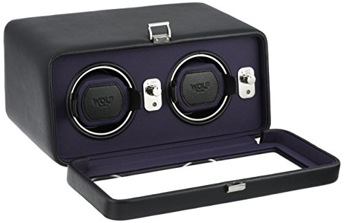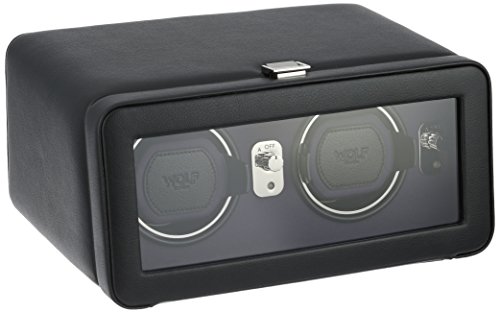 Studio : Wolf Designs Inc Publisher : Wolf Designs Inc Product Description The WOLF Windsor Double Watch Winder with Cover is both precision instrument and eye-catching display case. This mid-century-inspired design comes in the pebbled faux leather body and textured silk faceplate of your choice with stunning chrome-finished hardware. The clear glass cover protects two side-by-side winding modules, as well as easy-to-use controls. Includes a universal AC power adapter but is also compatible with batteries (not included). Additional Features Rotates 900 turns per day 10-second start delay Intermittent rotation with pre-programmed pause and sleep phases Clockwise, counterclockwise, and bi-directional settings Bi-directional doubles the number of turns per day Cuff fits bigger, heavier watches -- up to a 52mm case Locks cuff into rotator drum securely Includes universal AC power adapter Can be powered by D-Cell/lithium batteries (sold separately) Dimensions: 11.5W x 8D x 5.25H in.. 2 winder modules. Choose from available leather color options. Textured silk lining. Glass cover and chrome hardware. 0