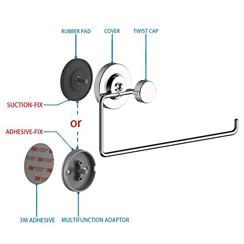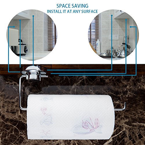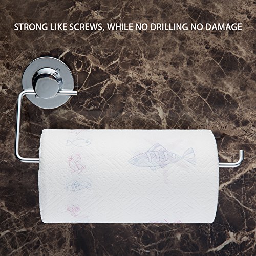֎SUPER-THICK 304 Stainless Steel and CORROSION RESISTANT PREMIUM FINISH - This incredible suction cup paper towel holder is made up of high strength materials 304 stainless steel, which are chrome plated for a premium finish and high-corrosion resistance (5 years non-corrosion) and easy cleaning.