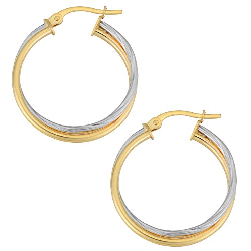 These gold hoop earrings are beautifully crafted of 14k two-tone gold and showcases an overlapping hoop earring style that is simply eye catching. Simple and fashionable, this 14k two-tone gold will look great with your casual and formal attire.