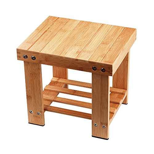 -. Title : IPOW Multfunctional Small Bamboo Step Stool Seat w/ Storage Shelf