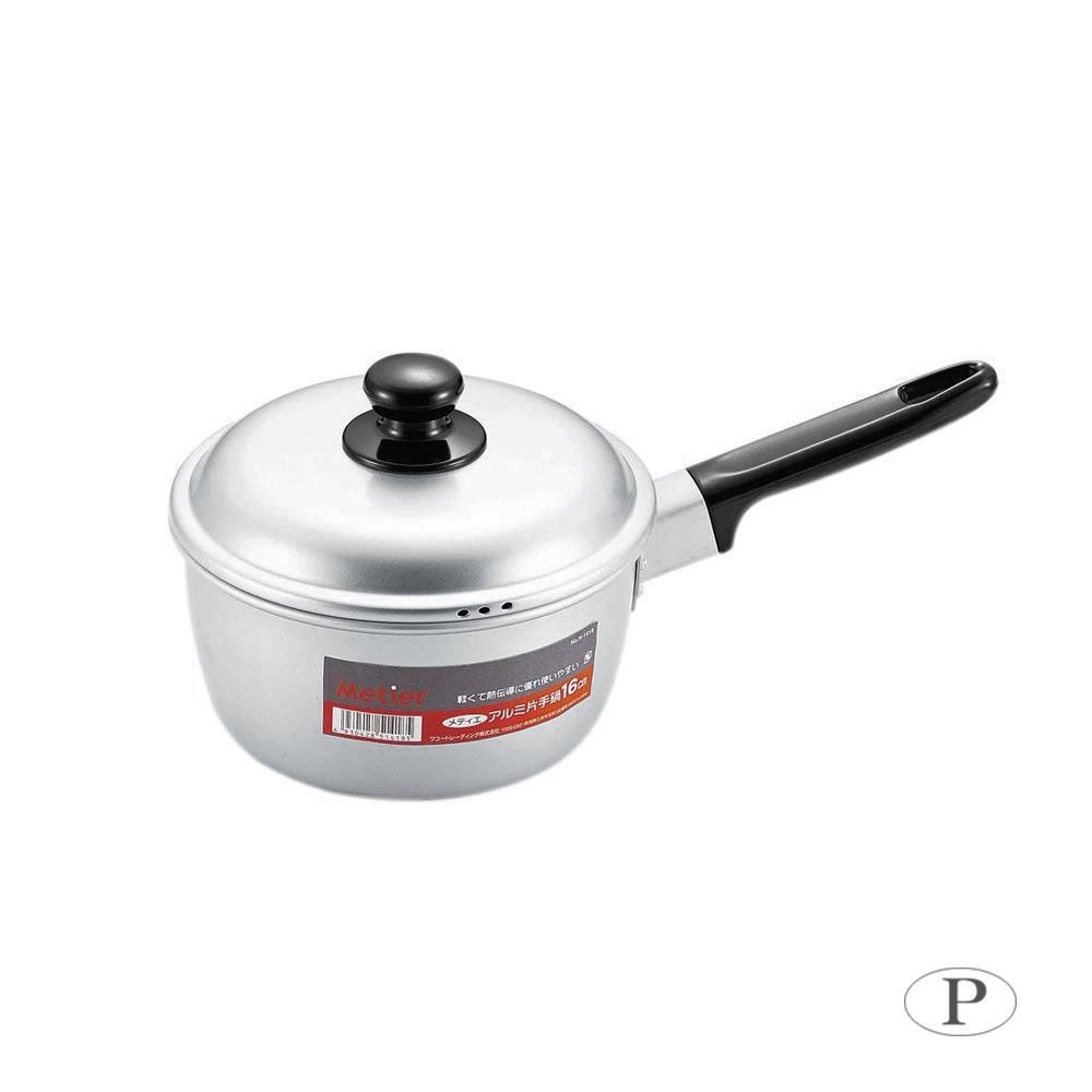 fk094igrjsアルミ製なので、熱効率に優れています サイズ (約)全長315×幅175×高さ140mm(底の厚さ:0.8mm) 個装サイズ:32×18×14cm 重量 約304g 個装重量:750g 素材・材質 本体・蓋:アルミニウム合金(アルマイト加工) 取っ手・蓋つまみ・座板:フェノール樹脂(耐熱温度150度) 仕様 満水容量:約1600mL ガス火専用 製造国 中国 軽くて使いやすい片手鍋 アルミ製なので、熱効率に優れています