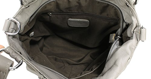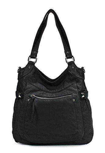 -. Feature : High quality synthetic washed leather with fabric lining. / Classic silver hardware. Two handles. / Interior cell phone pocket, multifunctional slip and a zipper pocket. / Shoulder strap drops 24". / Size: 10.1"x11.25"x3.3"