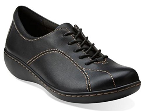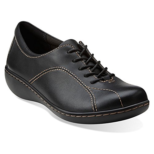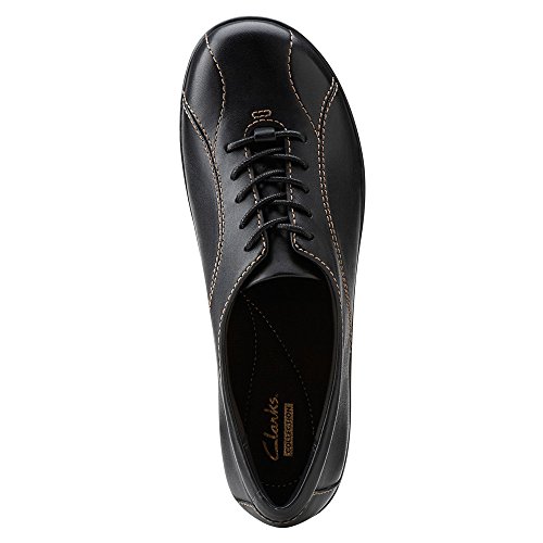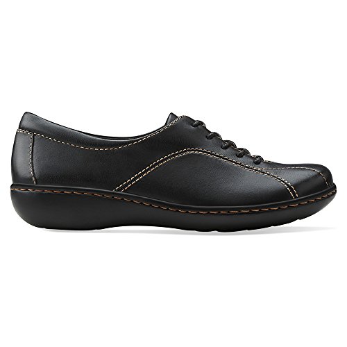 Studio : Clarks Publisher : Clarks Binding : Apparel Product Description A classic oxford is reimagined in rich black leather with handsome topstitching accents. Extra padding, an OrthoLite footbed, and a contemporary outsole cushion each step in comfort. Lace up this casual women's shoe with leggings or tights, or with pants of all styles. 0