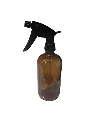 16oz Glass Bottle w/ Trigger Sprayer - Stream Spray or up to Wide Range Misting, 16oz Refillable Glass Bottle - Lotion Sprays, Cleaning Products, Essential Oils, or Aromatherapy (Amber / Black)