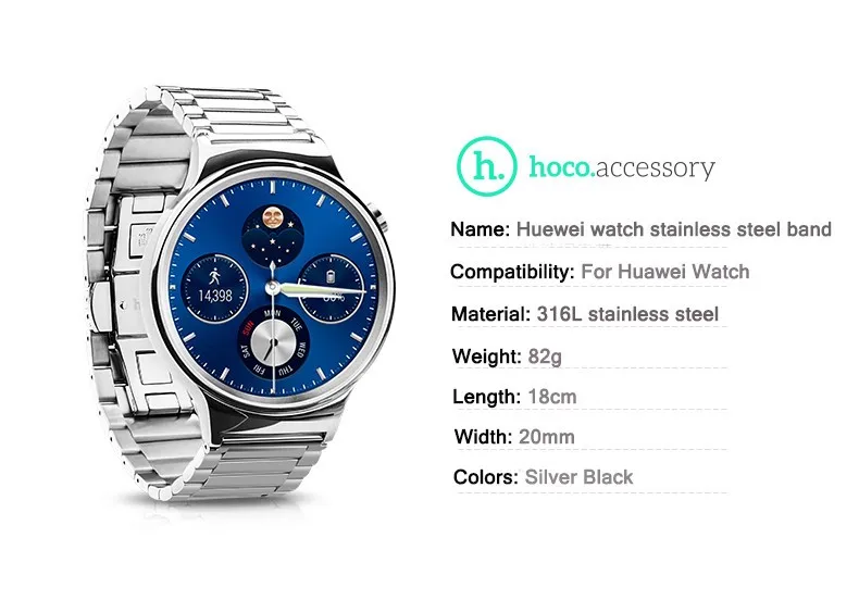 | [해외]Hoco 2016 새로운 실버 블랙 20 미리메터 링크 팔찌 밴드 huawei watch 스트랩 2 커넥팅로드 아름다운 소매 패키지 |