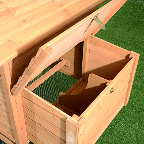 -. Feature : Dimensions: 52L x 82.25W x 35H in. / Chicken capacity: 3-5 / Works great for rabbits, chickens, ducks or other poultry / Two wheels for easy relocation througout your landscape / Hinged roof for easy access to refill food / water and extract eggs