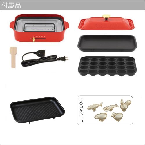 【부속품】뚜껑×1,평평함등 플레이트×1,타코야끼 플레이트×1, 그릴 플레이트×1,데코레이션 노브,목제 스파《추라》×1
