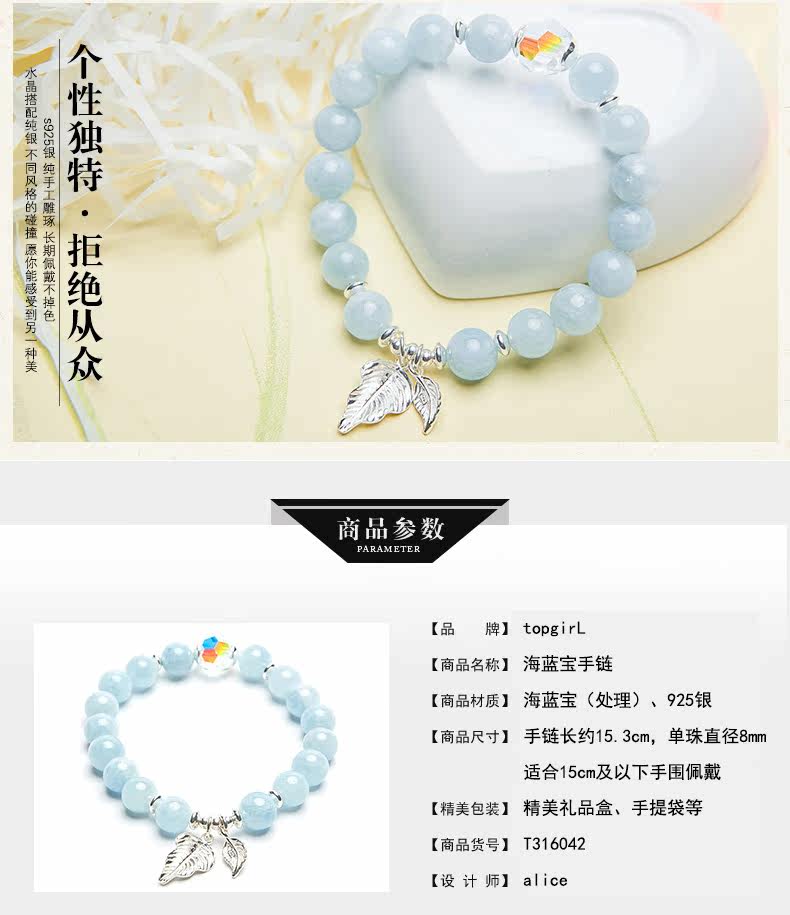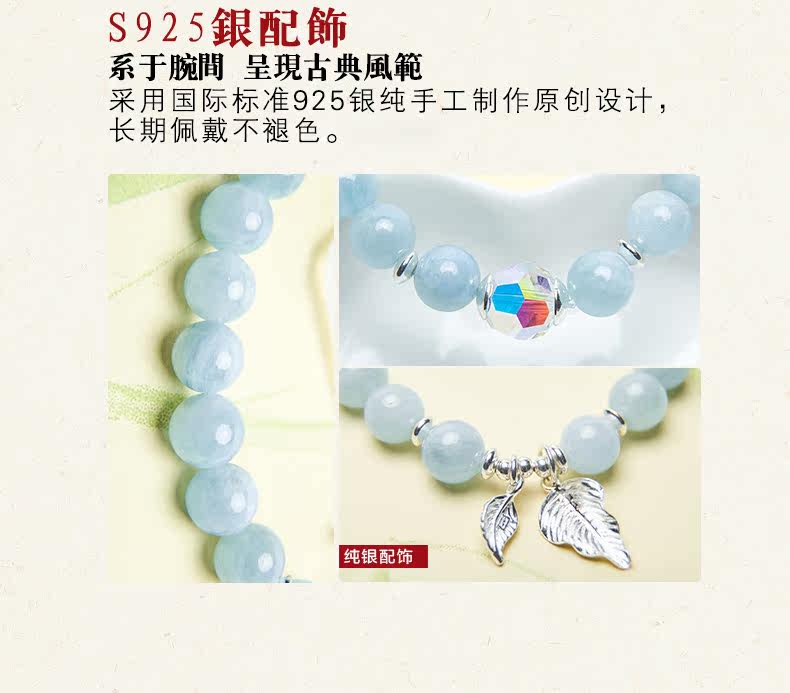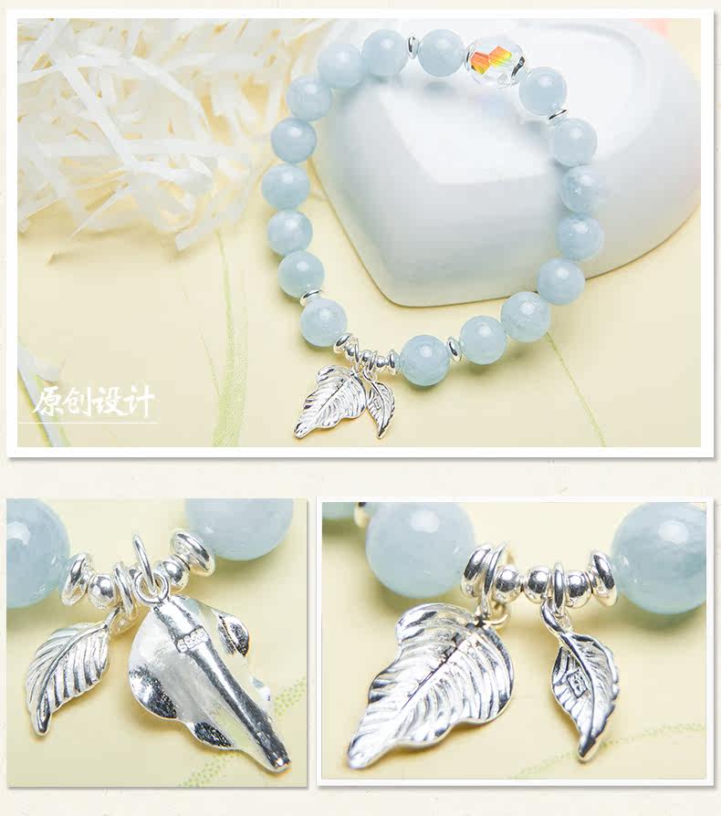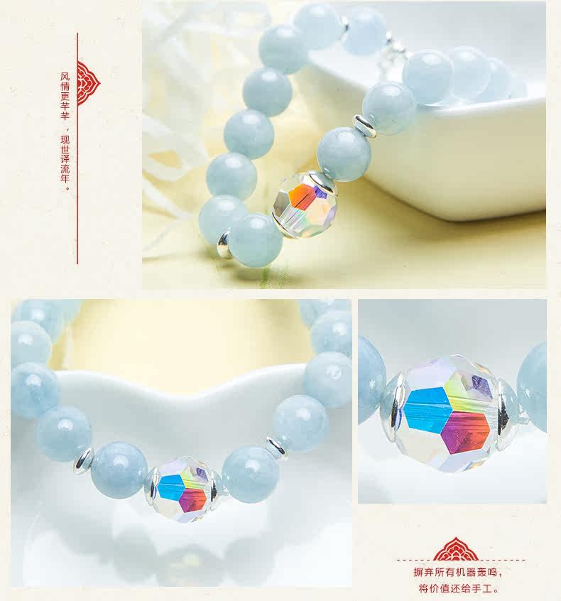 天然海蓝宝水晶手链女甜美百搭配饰个性原创手串节日礼物