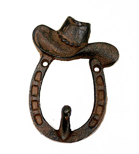 - Cowboy hat design solid wall hanger single hook in brown color vintage or rusty looking - durable to use for hanging key chain, scarf, shirt, necklace and whatever things you want to hang on it.