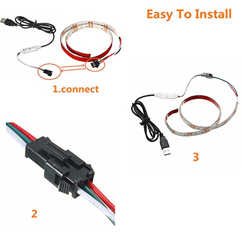 ★EASY TO INSTALL- Connectors on both ends for easy installation,USB interface,plug and play,easy to carry. no wall socket required.Flexible ribbon for curving around bends ,Ultra-bright but running at low temperature.Addressable LEDs allow each individual LED to have a distinct color and brightness to every other LED.