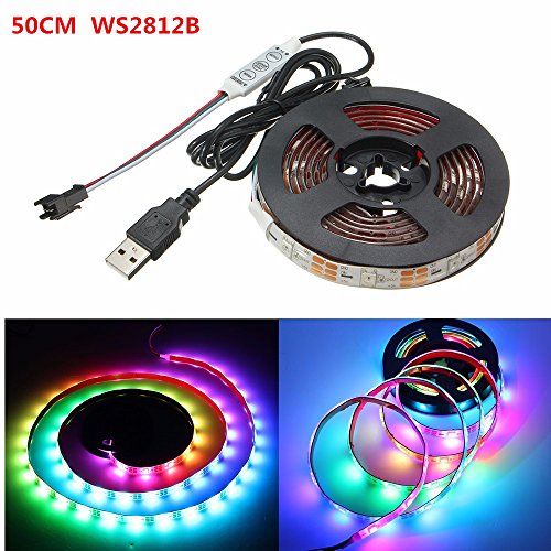 USB LED Strip,SOLMORE WS2812B 5050 SMD LED Strip Light Flexible Light Strip Ribbon Lights Waterproof for Wedding Party Home Wall Garden Fence Patio Color Changing Decorations 50cm