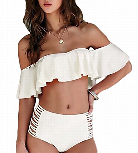 -. Title : Yuson Girl レディース オフショルダー 水着 ビキニ フレア ティアード ママ水着 体型カバー