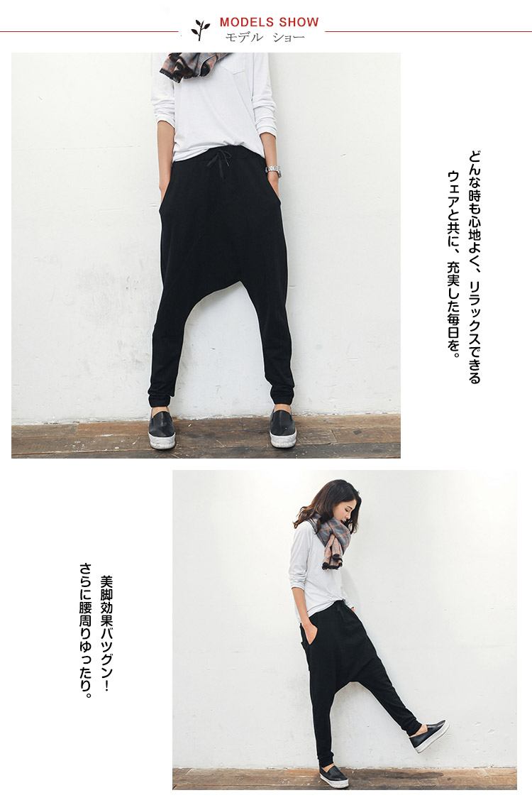 | どんな時も心地よく、リラックスできるウェアと共に、充実した毎日を。美脚効果バツグン!さらに腰周りゆったり。気になる太ももをカバーしてくれるサルエルシルエットのパンツ◎ カジュアルから大人めスタイルにもおすすめです! | |
