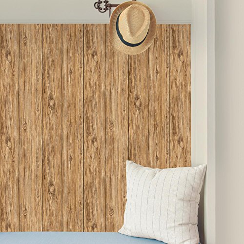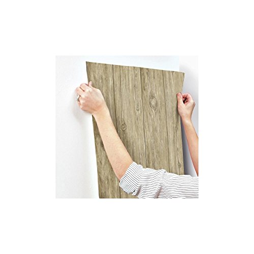 RoomMates RMK9088WP Mushroom Wood Peel and Stick Wallpaper, 20.5" x 16.5 feet, Brown