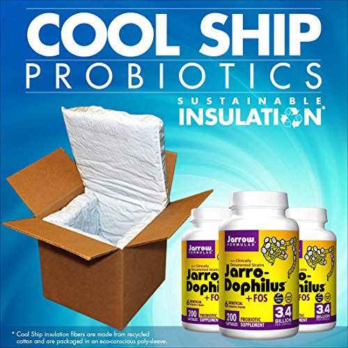 ReleaseDate : 2013-03-25 Studio : Jarrow Formulas Publisher : Jarrow Formulas Binding : Misc. Product Description Jarro-Dophilus FOS survives stomach acid and colonizes the intestines. FOS is a natural fiber that enhances the growth of beneficial probiotic bacteria. Each capsule contains 3.4 billion total probiotic bacteria. The cool ship process creates a custom fulfillment pathway so that probiotic products are kept refrigerated up until the point they are shipped. The products are packed in a unique cool ship box that utilizes insulation made with sustainable cotton fiber and cooled with reusable ice packs. The products are then fulfilled with either next day or second day shipping. This process delivers probiotics that have been kept cool and, in most cases, not exposed to prolonged extreme heat, supporting the highest levels of product potency. 0