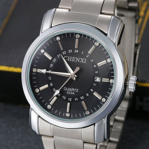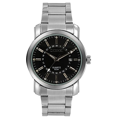 -. Feature : ファション 腕時計/ウォッチ メンズ ステンレス クオーツ 腕時計です。 / 【サーズ】長さ:24cm/ケース直径:3.9cm/厚さ:1.2cm/バンド幅:2cm【重量】0.099kg / 【ムーブメント】クオーツ 【バンドカラー】シルバー【文字盤カラー】ブラック【ケースカラー】シルバー / 【ケース素材】合金【留め金】合金【バンド素材・タイプ】ステンレス【防水機能】日常生活防水(雨、水)【素材】合金とステンレス / パッケージ:腕時計、布袋、英語取扱説明書