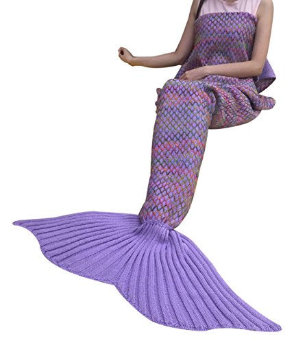 DDMY Mermaid Tail Blanket Knitted Handmade Crochet For kids Teens Adult All Seasons Sleeping Warm Soft Snuggly Living Room Quilt, 72.8''x35.2'', Purple