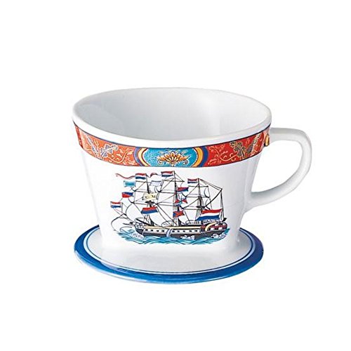 이마리 구이의 전통 적인 모양과 남만인을 배치 한 일본식과 서양식의 절충을 의식했다디자인의 커피드리퍼입니다.뒤와 표각각 다른 도안(인물/배)가 되고 있습니다.제조국:일본 소재 재질:도기 상품크기:D110×W130×H82mm