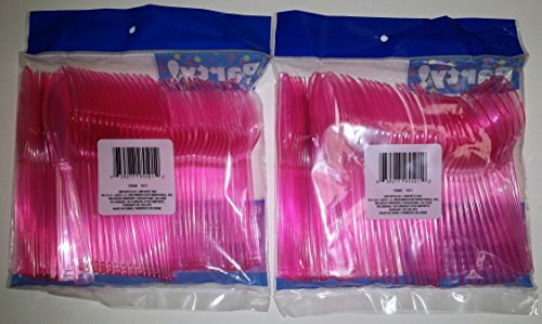Heavy Duty Plastic Pink Translucent Disposable Flatware - 96 pcs, 32 Spoons, 32 Forks, 32 knives