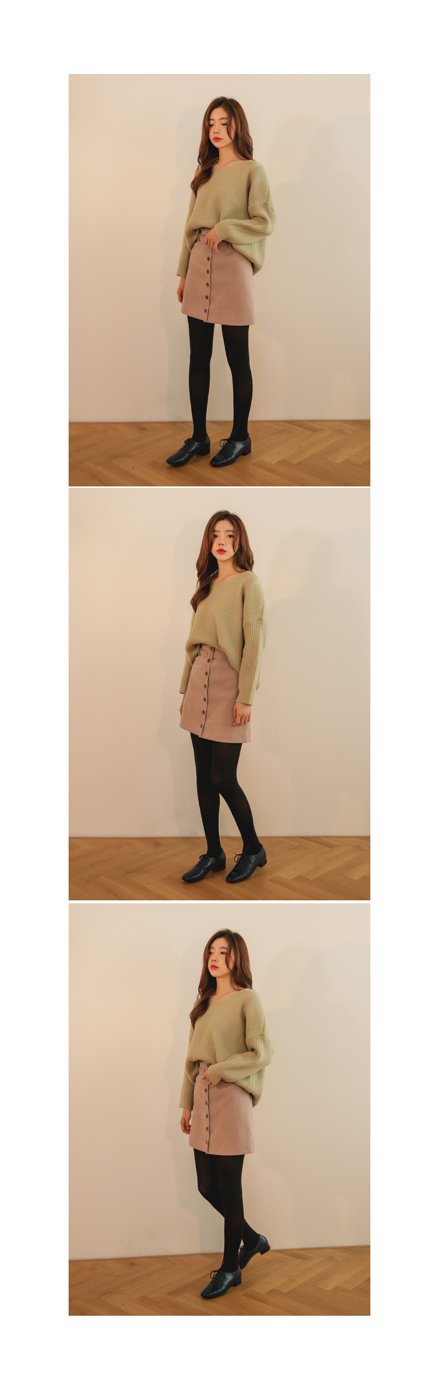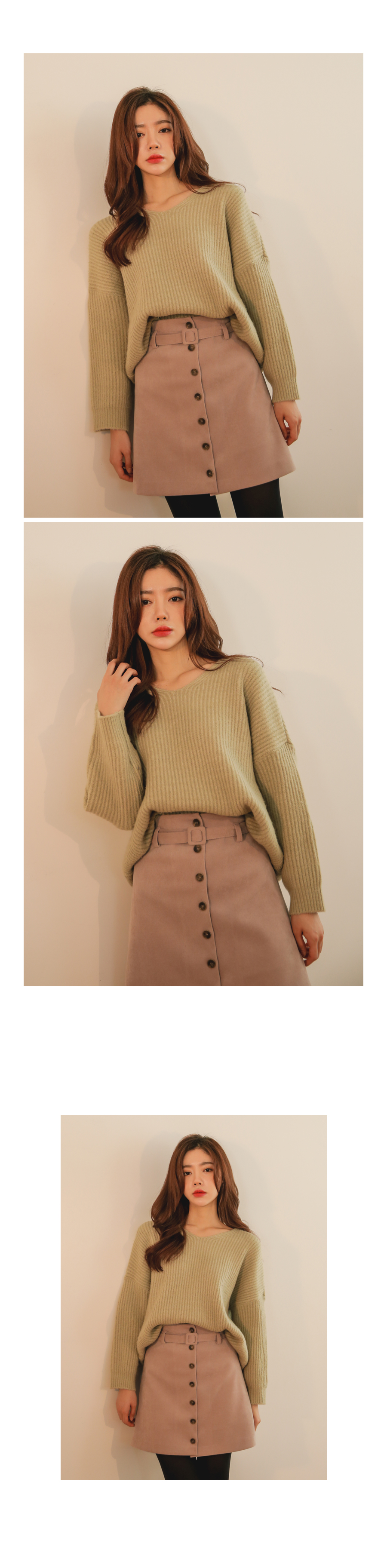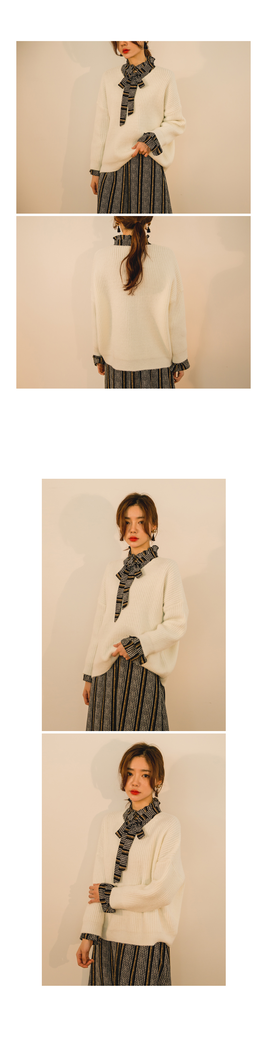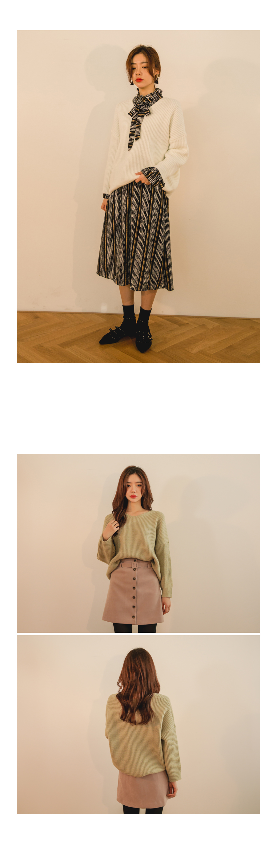 드롭된 숄더라인으로 전체적으로 루즈한 핏감의 니트웨어에요