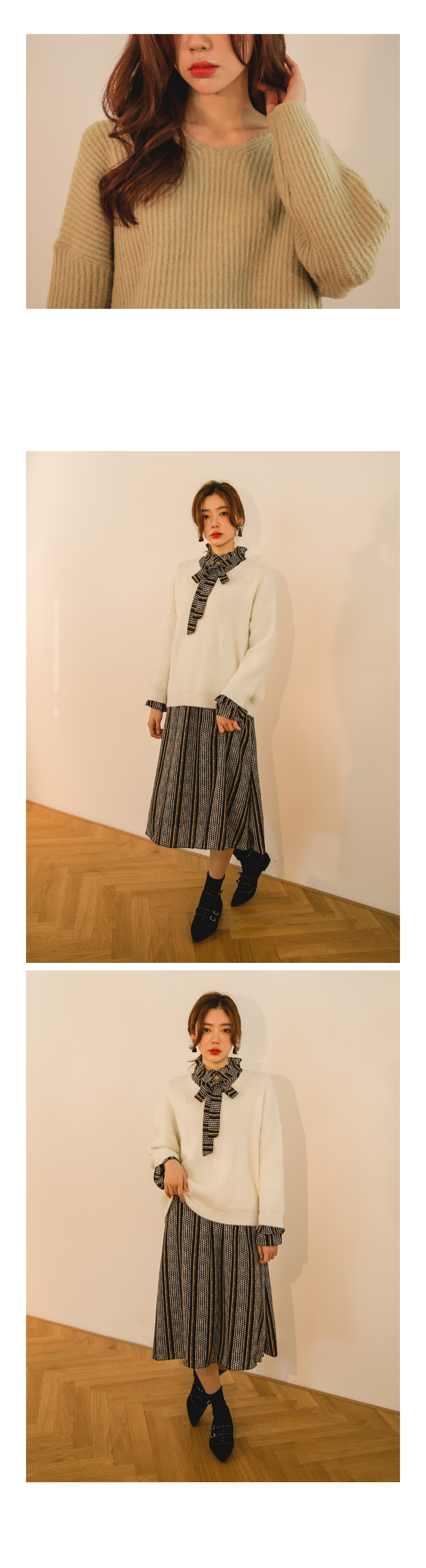브이넥 니트와 목도리가 세트로 구성된 니트를 소개할께요 !