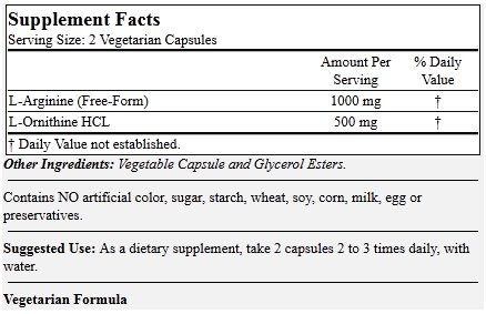 -. Title : L-Arginine-L-Ornithine 500-250 (120 Vegetarian Capsules)