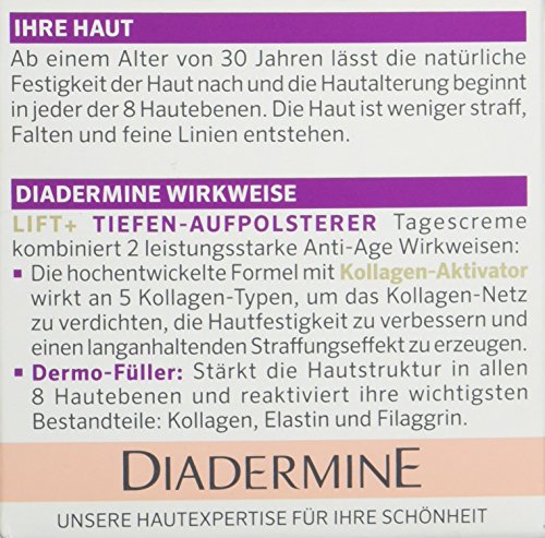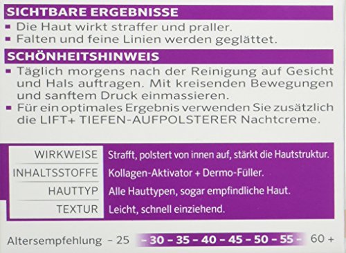 Lift + Depth-Upholsterer Day Cream combines 2 powerful anti-age effects: The highly developed formula with collagen activator works on 5 collagen types to compress the collagen network, improve skin firmness, and produce a long-lasting tightening effect. Dermo-Filler: Strengthens the skin structure in all 8 layers of the skin and reactivates its most important ingredients: collagen, elastin and filaggrin.