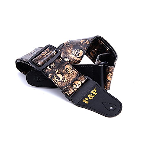 CARBAYSTAR Leather acoustic guitar bass Electric guitar strap guitar parts instrumentos Musicais accessories gold skull style